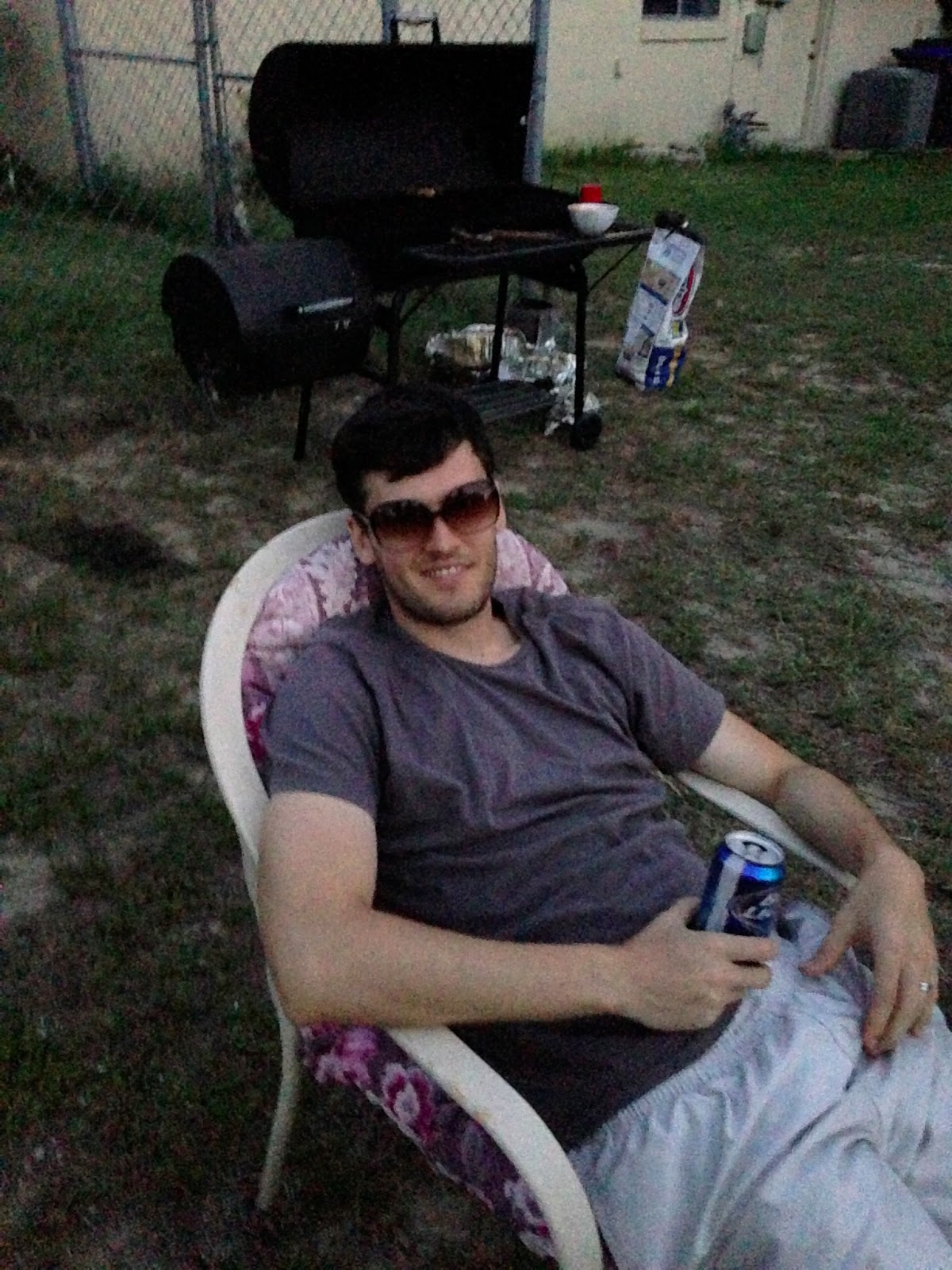 Chris sporting my sunglasses so I could play cornhole a little better, the weekend before he left |